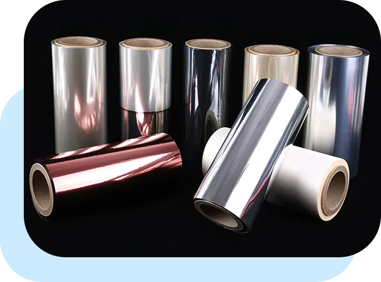 8 Комплексна продукціяРізні металелізовані плівки (VMPET/VMCPP/VMBOPP), покритта плівка (PVDC/Acrylic/PVA), плівка Alox Caoted (Alox PET для ламінування/друку), безперервна інновація нових та висококласних продуктів.